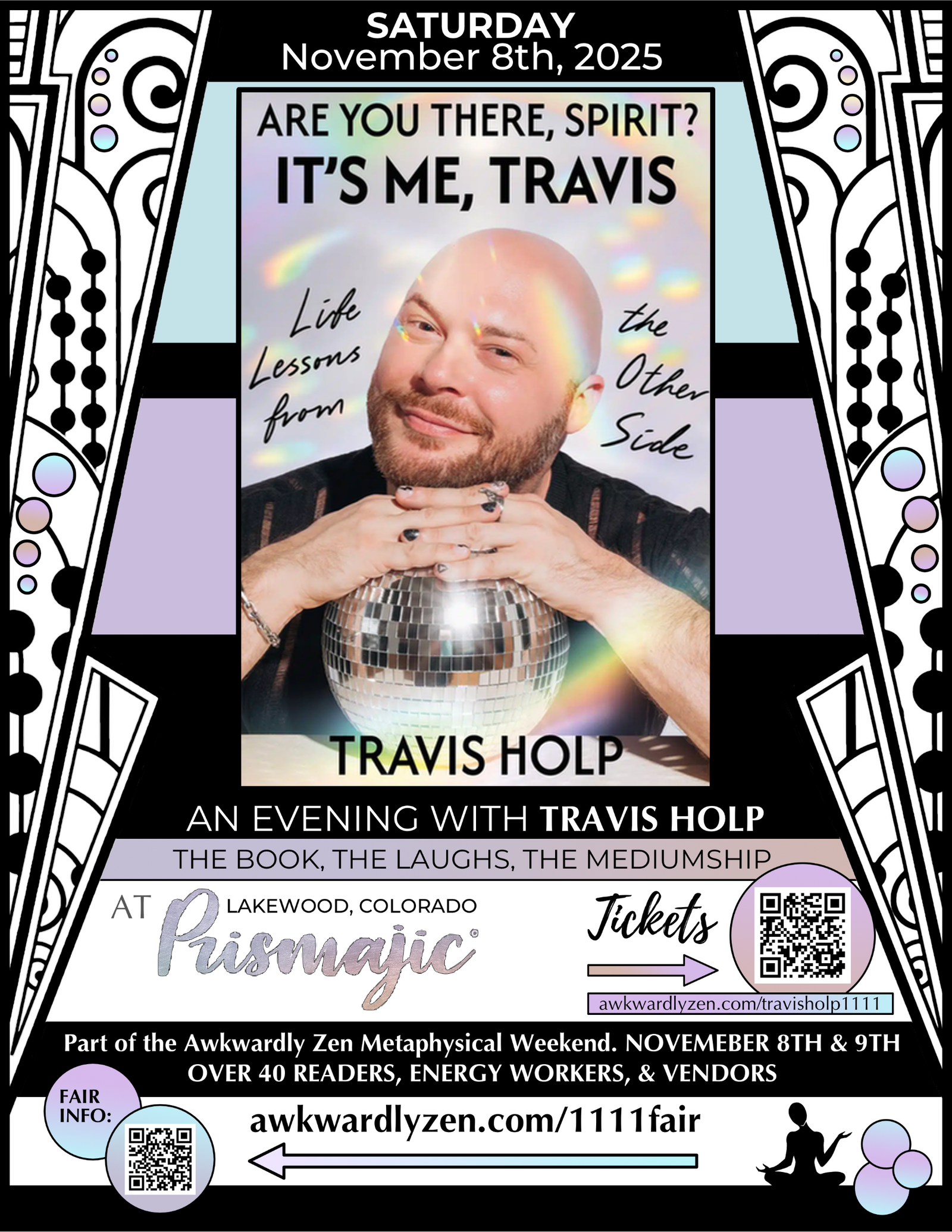 Awkwardly Zen is thrilled to work with the GORGEOUS event space at Prismajic at the Colorado Mills Outlet Mall in Lakewood, Colorado. This community-owned space is full of whimsy, magic, and high-frequency vibes, and it is the PERFECT place to come hang for the day!  Plan on grabbing a snack, meal or craft cocktail or mocktail from the Night Owls Bar and wander through the exquisitely decorated space meeting over 40 readers, energy workers, and metaphysical vendors.